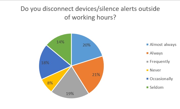 - July 2021 Generation 2004 survey on workload, digital overload and burnout [14] (ongoing [15]: almost 500 participants). Here are some preliminary results on whether staff really ever disconnect.
